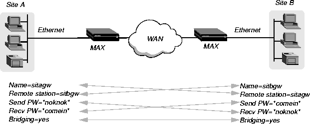 Name and password authentication is required, as described in How the MAX establishes a bridged connection.